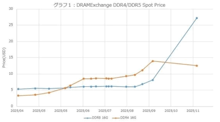 此外,市场结构分化也很明显:降价主要集中在消费级DDR5内存,而美国市场价格仍然坚挺,中国DDR4波动有限,企业级内存依旧高位运行。